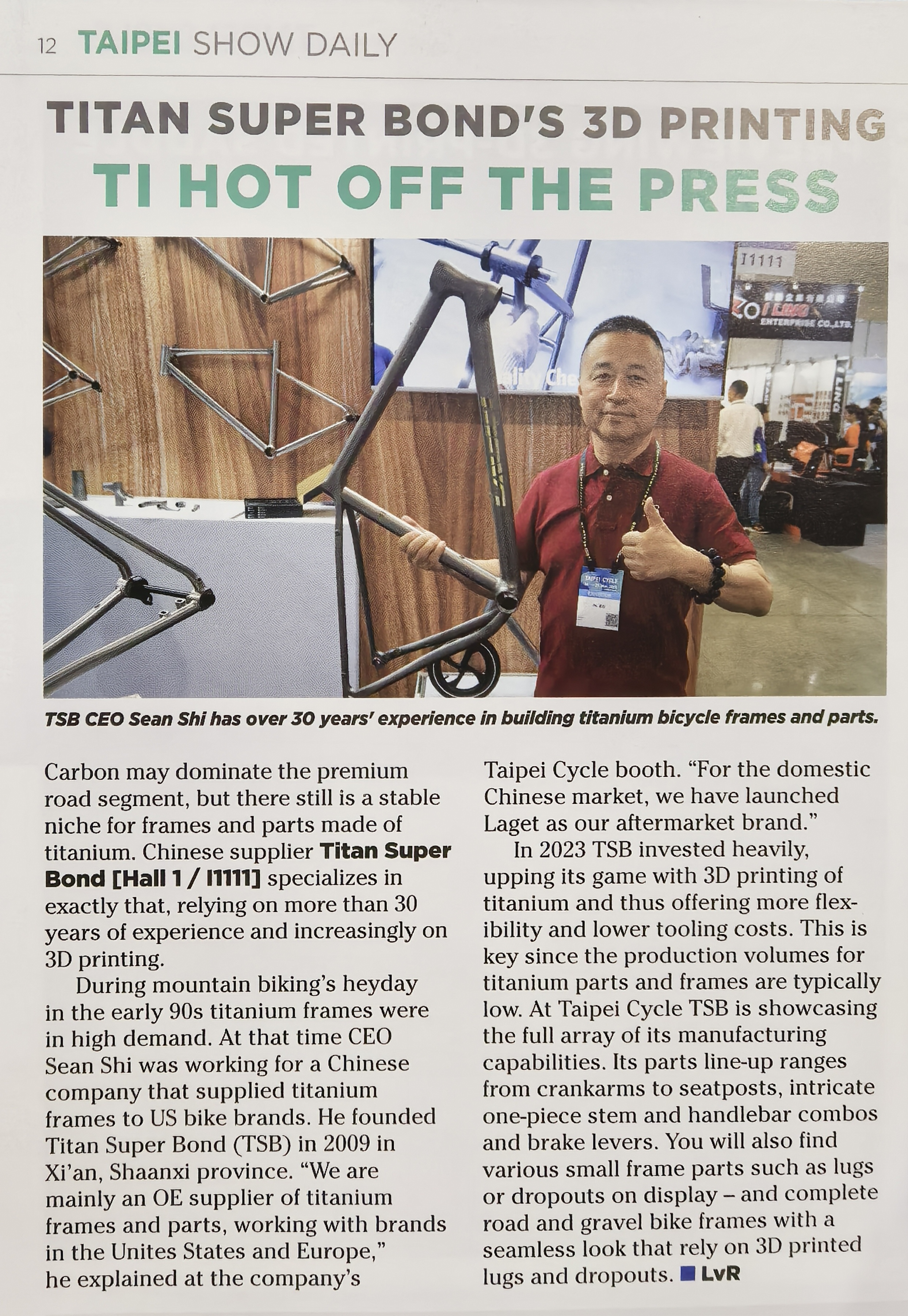 A partnership between Titan Super Bond and BLT has resulted in the first fully 3D printed titanium alloy bicycle frame in Asia.